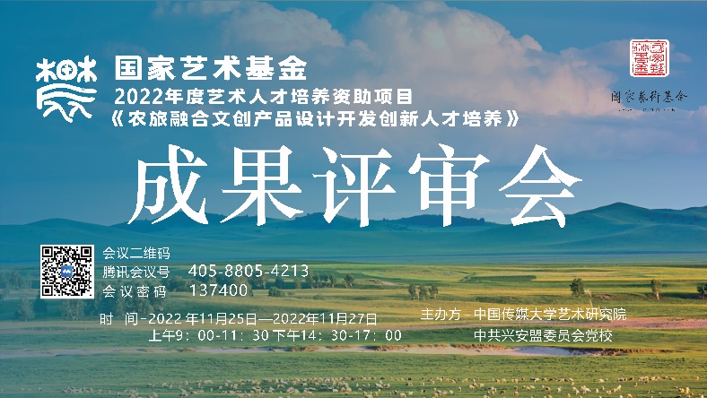 (通讯员 张郁纷)11月25日至27日,由我校主办的2022年度国家艺术基金艺术人才培养资助项目《农旅融合文创产品设计开发创新人才培养》成果评审会在线上举行。《农旅融合文创产品设计开发创新人才培养》项目由中国传媒大学、兴安盟委党校联合申报实施,是我校与兴安盟开展盟校合作以来的重要成果。