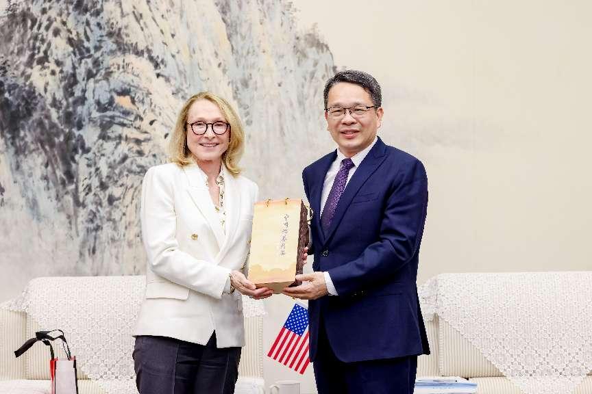 张树庭对穆尔校长一行来访表示热烈欢迎和亲切问候。他表示,自2013年我校与伯克利音乐学院签署了校际战略合作协议后,两校一直保持着友好合作关系,曾多次合作开展国际音乐交流及音乐产业高端论坛等活动项目,建立了深厚的友谊。未来,他希望两校通过多种类型的项目,进一步拓展和深化彼此之间的合作交流。双方也可以就艺术教育发展的新趋势和新问题,共同开展科学研究,促进中美文化交流互鉴,特别是中美两国青年一代的相互认知和友好感情。伯克利音乐学院作为我校发起的传媒高等教育国际联盟的盟校之一,张树庭还诚挚邀请穆尔校长参加联盟的学术活动以及第十一届世界大学女校长论坛。
