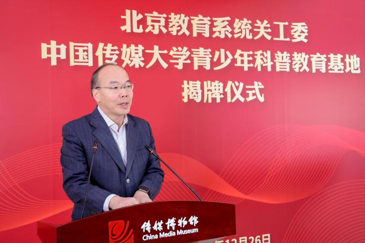 (通讯员 张丽)2023年12月26日,北京教育系统关工委“中国传媒大学青少年科普教育基地”揭牌仪式在中国传媒大学传媒博物馆举行。揭牌仪式由中国传媒大学离退休工作处处长兼学校关工委秘书长傅楠同志主持。
