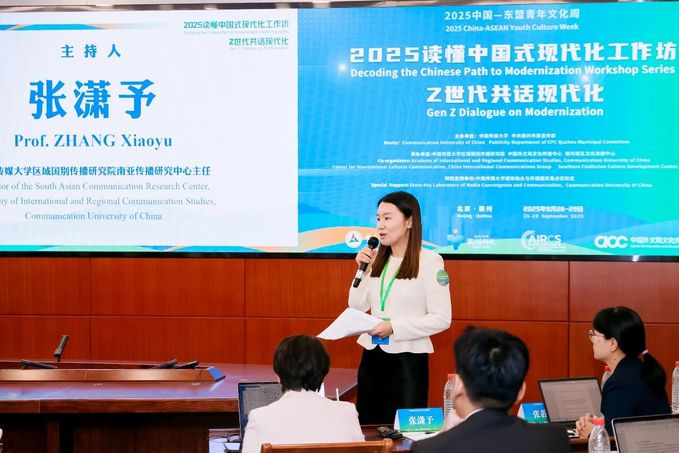 (通讯员 蔺优悠)9月26日上午,2025读懂中国式现代化工作坊在中传学术中心开幕。本次工作坊以“Z世代共话现代化”为主题,邀请来自印度尼西亚、老挝、马来西亚、缅甸、新加坡、泰国、越南13位东盟国家青年代表与中传青年师生交流对话。工作坊由中国传媒大学和衢州市委宣传部主办,中国传媒大学区域国别传播研究院,中国外文局文化传播中心和衢州南孔文化发展中心承办,中国传媒大学媒体融合与传播国家重点实验室特别支持。