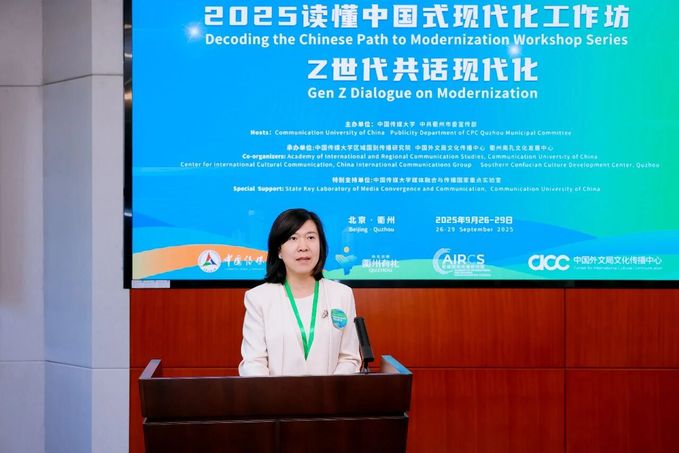 主题发言环节由工作坊创办者、中国传媒大学区域国别传播研究院执行院长周亭主持。她表示,探讨中国式现代化需要将学理研究与业界实践紧密结合,并期待与会青年能从来自学术前沿与媒体一线的嘉宾分享中获得启发。
