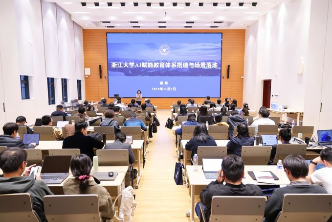 本次培训以“人机协同能力提升”为主题,为参训教师提供了从理念到实践的认知图谱。浙江理工大学郭江峰教授分享了AI赋能教学设计的实践路径;浙江大学黄健、王可欣、卢圣华、高翔等专家分别从“AI+教学、创作、科研、管理”四大场景,呈现人机协作的真实案例与前沿探索;教育部长江学者特聘教授黄萃则从战略高度,深入解析AI赋能教育体系重构的顶层设计与实施机制,为参训教师提供了宏观视野与方法论支撑。