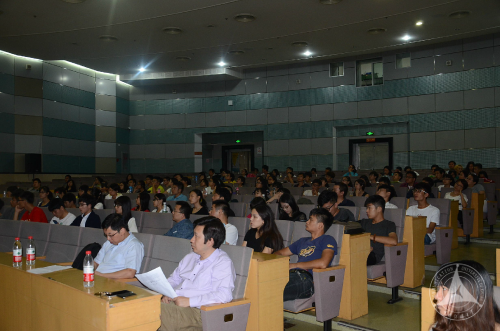 万建民副总编辑在致辞中讲述了《中国企业家》杂志的创刊历史,他认为,经济是国家的支柱,企业家应成为一个受人尊敬的阶层;该杂志主办的中国创客大赛是创业者展示自我的平台,从三千多名创业者中脱颖而出的创客16强走进高校,希望同学们能从活动中受益。