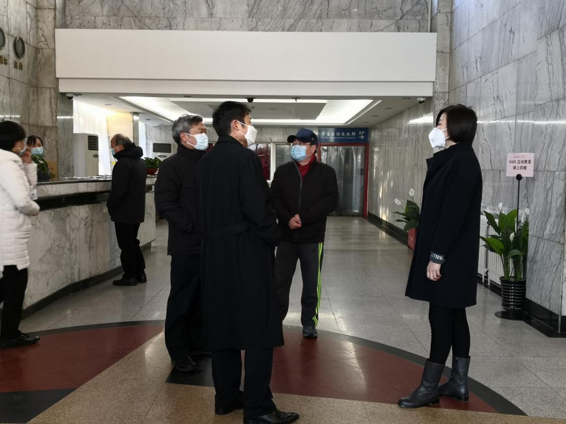 在梆子井大学生公寓、中蓝大学生公寓和国际交流中心,校领导详细了解公寓管理措施,了解留校学生情况,特别是留校学生体温检测与生活环境消毒,并同留校学生亲切交谈,叮嘱他们平常要多开窗通风,多看书,勤锻炼。