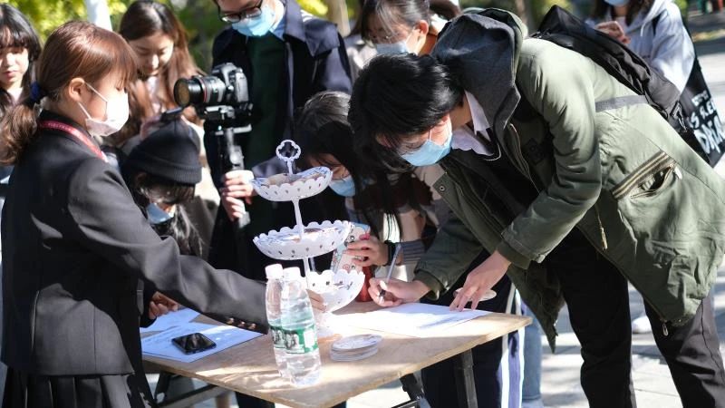 今年的会场共设约70摊位,学子们可在入口处登记并测温后,领取光盘挑战赛入场券,根据入场券上的地图选择中意的社团前去“品尝”并“光盘”。参加“百团大战”的不仅有大家熟悉的子衿汉服社、制音工厂、港澳台侨学生发展协会等老牌社团,还有中国传媒大学书画协会、演讲协会、法律协会和中传互动艺术沙龙社等今年新成立的社团。除此之外,本次“百团大战”还分别在孔子广场和西配楼北广场小舞台开展了转盘赢奖活动和多样化的社团表演。天气晴朗,场内气氛同样暖融融。