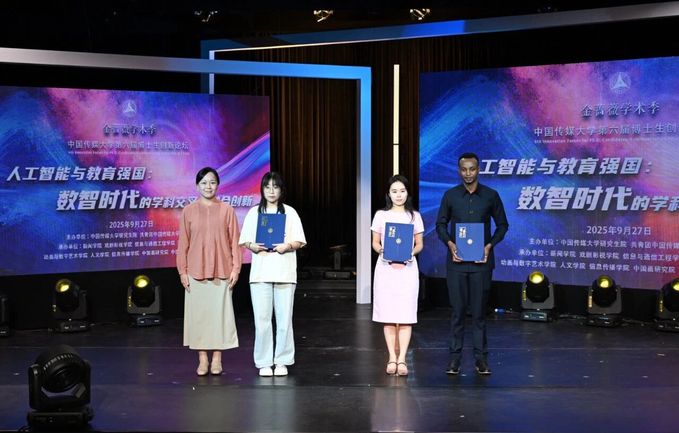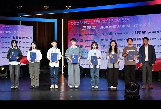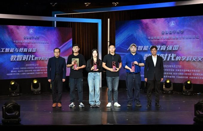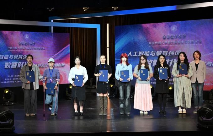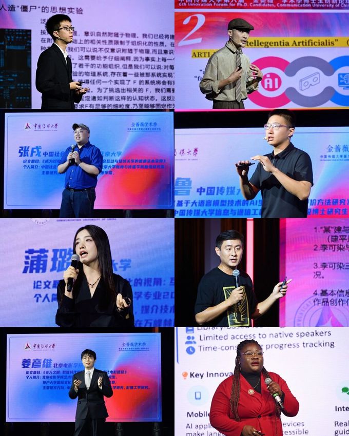 在优秀论文作者代表演讲部分,东南大学艺术学专业2024级博士研究生雷棋钰作“人工智能艺术创作主体性获得的逻辑基础与‘次主体’特征”主旨演讲;中国传媒大学艺术史理论专业2021级博士研究生邓若倓作“对差异的数字化模拟——论人工智能时代计算美学何以可能”主旨演讲;中国社会科学院大学传播学博士、北京大学新闻与传播学院助理研究员张戌作“成为过敏专家:基于免疫反应、社会互动与场域关系的健康资本获得”主旨演讲;中国传媒大学信息与通信工程专业2025级博士研究生亓泽鲁作“基于大语言模型技术的AI生成视频质量评价方法研究”主旨演讲;上海大学电影学专业2023级博士研究生蒲璐作“故事智能化的视角:互动叙事体系(INS)的生成机制研究”主旨演讲;中国传媒大学中国画博士班2023级博士研究生于露作“李可染艺术研究‘空白’新发现——关于李可染遗留三十年代48张水墨漫画遗作考证”主旨演讲;北京电影学院艺术学专业2022级博士研究生姜彦维作“非人之眼:数智时代科学美学下的他者化电影路径”主旨演讲;中国传媒大学信息传播学院尼日利亚籍博士研究生李思然(Nwekeorji Juliet Ebele)作“The Role of Artificial Intelligence (AI) in Enhancing Cross-Cultural Communication through Language Education”主旨演讲。
