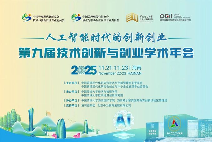 11月21日至23日,第九届技术创新与创业学术年会在海南省陵水黎安国际教育创新试验区中国传媒大学海南国际学院滨海校区举行。本届年会由中国管理现代化研究会技术与创新管理专业委员会、创业与中小企业管理专业委员会主办,中国传媒大学经济与管理学院、数字经济创新研究院承办,海南国际学院、陵水黎安国际教育创新试验区管理局协办。