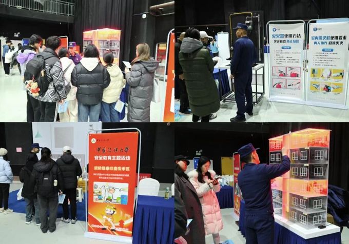消防安全体验区聚焦日常消防安全隐患,设置了消防隐患排查、模拟油锅起火、高层建筑应急疏散等演示场景。借助电子仿真道具和实物模型,消防员详细演示了不同类型火灾的处置流程与逃生技巧,重点强调电动车安全充电、宿舍火灾预防等与师生生活密切相关的安全知识,强化火灾防范与应急处置技能。