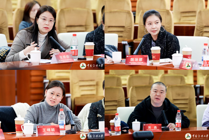 会上,与会嘉宾和设计思维学院师生一起展开热烈讨论。联合国开发计划署青年发展专家高鑫、中华少年儿童慈善救助基金会管委会主任范占国、人民网人民健康运营部副主任彭元元、北京日报社京报传媒副总经理吴鑫、中国口腔清洁护理用品工业协会秘书长高文颖、中国纺织工业联合会品牌工作办公室副主任王晴颖、时尚传媒集团人力资源总经理兼共享服务中心负责人魏琳娜、中广数智科技(北京)有限责任公司创新业务部总监张婷婷、北京老字号协会秘书长闫树、京华茶叶营销总监郭炳桂、王致和市场总监鲍晓圣、六必居产品经理与市场部副经理王英,围绕产教融合路径展开交流,普遍认同设计思维在人才培养中的重要作用,提出应加强 AI 应用与伦理教育、深化校企长效协同、培育复合型传媒人才等建议。研讨会凝聚了各界共识,明确了以设计思维为底层逻辑、以产教融合为实践路径的人才培养方向,为 AI 时代传媒教育创新与行业协同发展注入新动能。