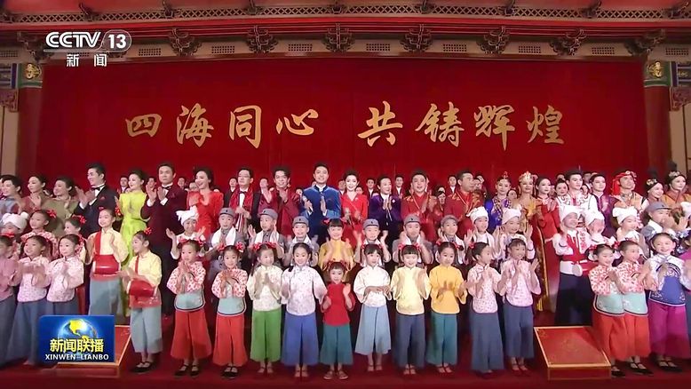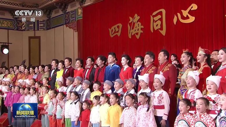 文艺工作者现场表演了精彩的节目。最后,全场起立高唱《团结就是力量》。会场内洋溢着喜庆祥和的节日气氛。