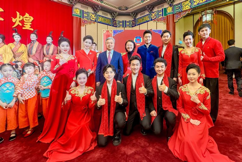 自2025年5月承接文艺演出任务以来,学校党委高度重视,全国政协委员、中国传媒大学党委书记廖祥忠作为文艺演出综合组成员,第一时间安排部署,在排练过程中多次指导,严格把关。播音主持艺术学院、音乐与录音艺术学院(艺术教育中心)、戏剧影视学院师生以高度的责任感、使命感和荣誉感全情投入到排演工作,用精湛的专业素养和昂扬的精神风貌传递出新时代的宏伟气象,描绘新春佳节的祥和盛景,凝聚奋进新征程的磅礴气势,生动彰显了中传师生“政治素养高、业务能力精、家国情怀深”的青春风采。