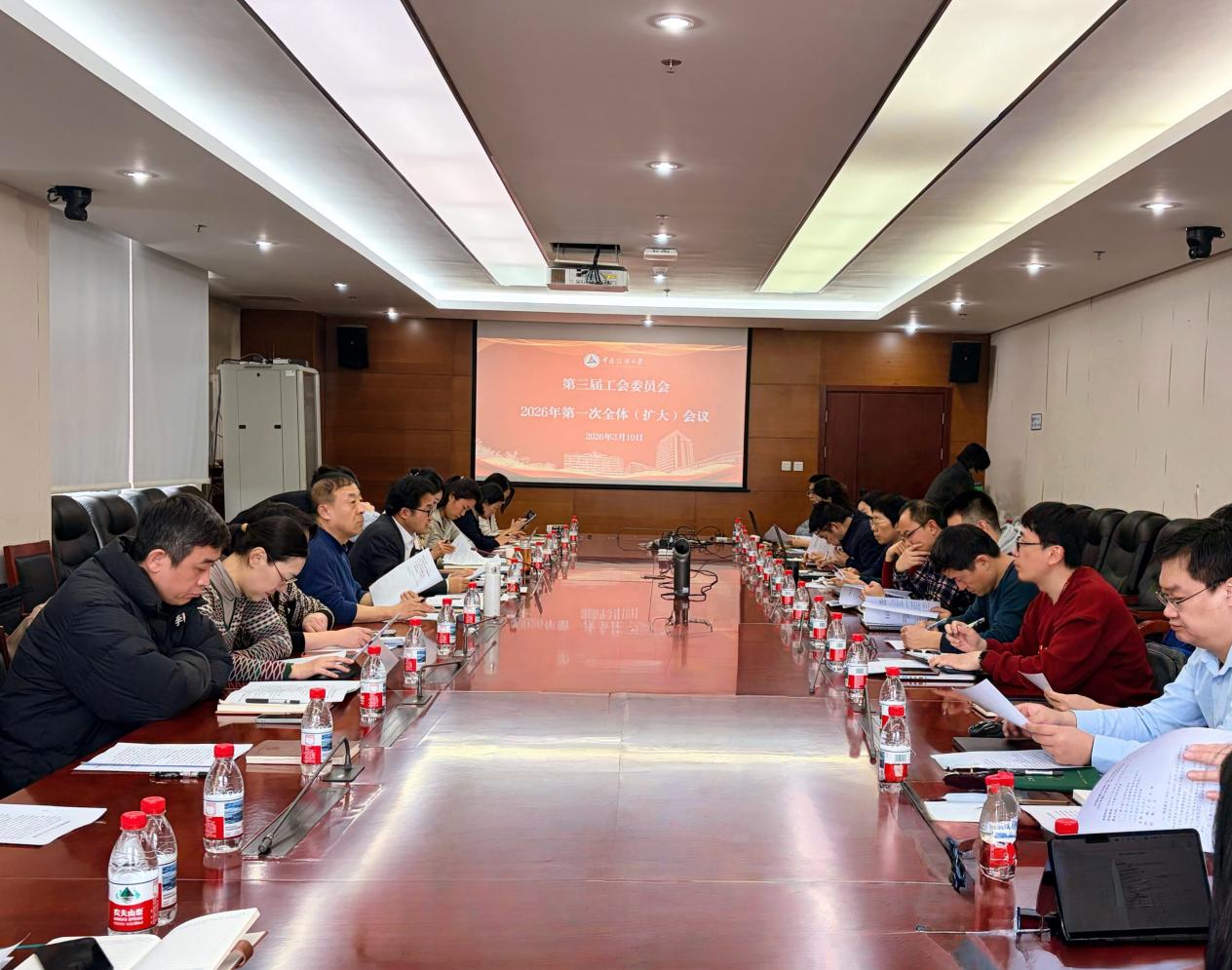(通讯员 李婳)3月10日,校工会在明德楼918会议室召开学校第三届工会委员会2026年第一次全体(扩大)会议。党委常委、副校长任孟山出席并主持会议,第三届工会委员会委员、经费审查委员会委员及各二级分工会主席、委员代表和校工会专职干部40余人参加了本次会议。