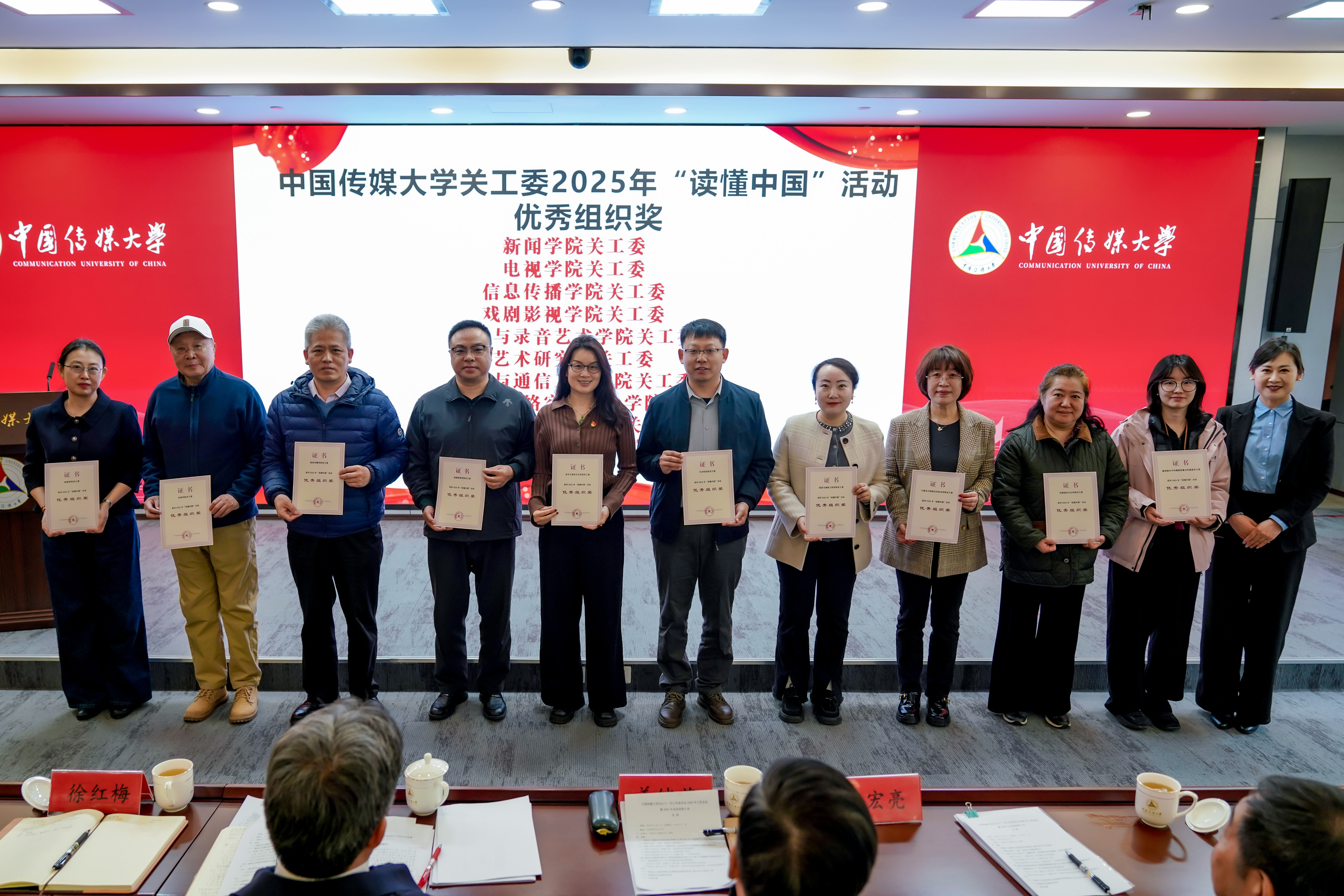 傅楠宣读《关于中国传媒大学关工委2025年“读懂中国”活动获奖名单的通报》。