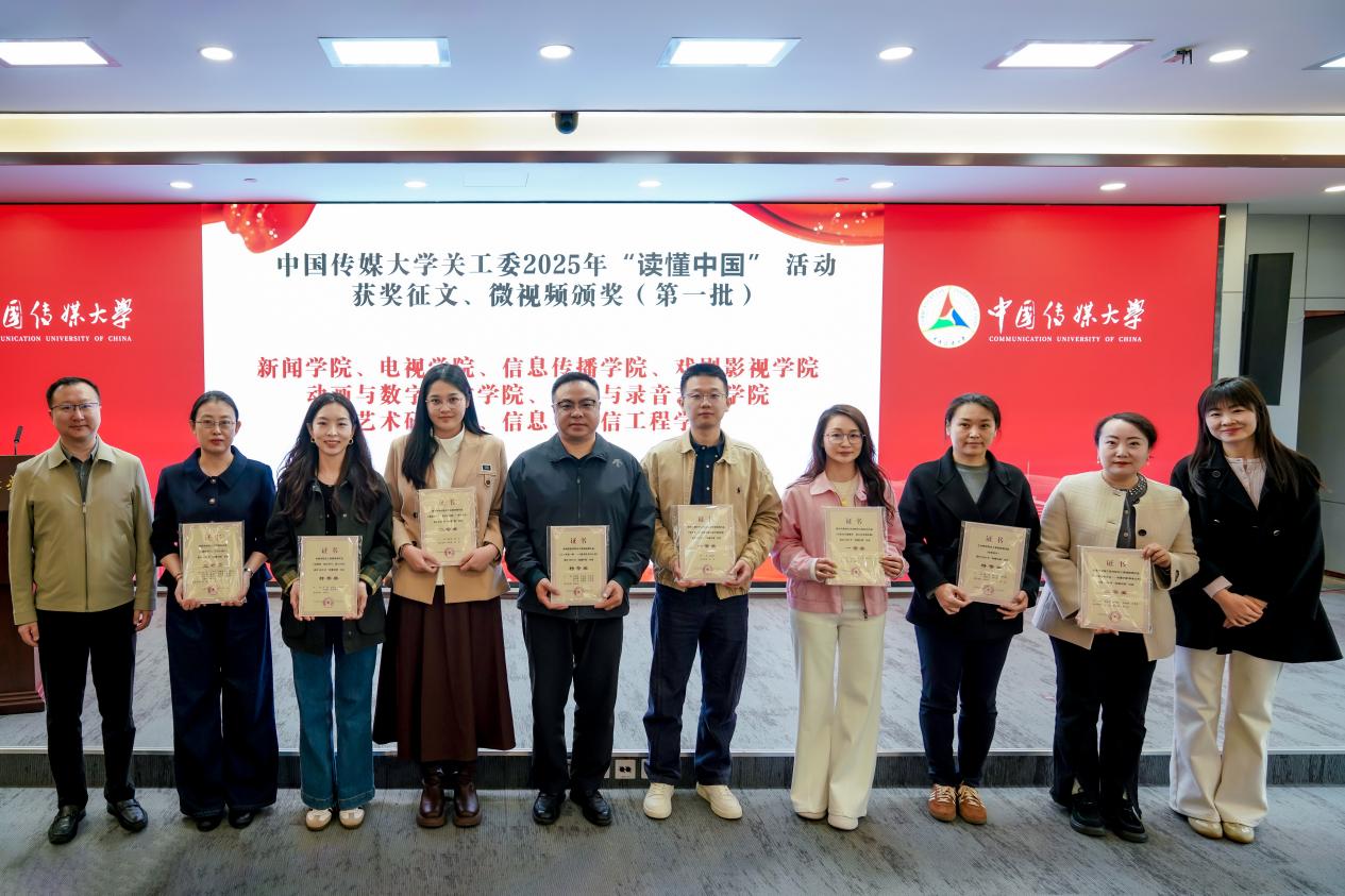学校关工委副主任单位负责人代表朱传欣、张琳、王芯蕊、刘幼春为学校关工委2025年“读懂中国”活动27个“优秀征文”和15个“优秀微视频”的获奖代表颁发证书。