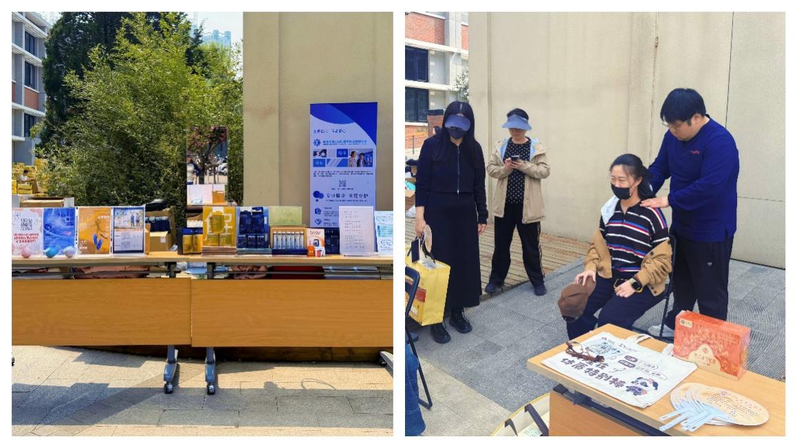 在进一步落实学校春季工作会议精神,深入践行“健康第一”理念的背景下,工会特邀医合作用(北京)医疗科技有限公司和双桥罗氏罗剑健骨堂,将体姿体态检测、康复拉伸、肩颈按摩等大健康服务与健步走活动有机结合,供有相关需求的老师现场体验。