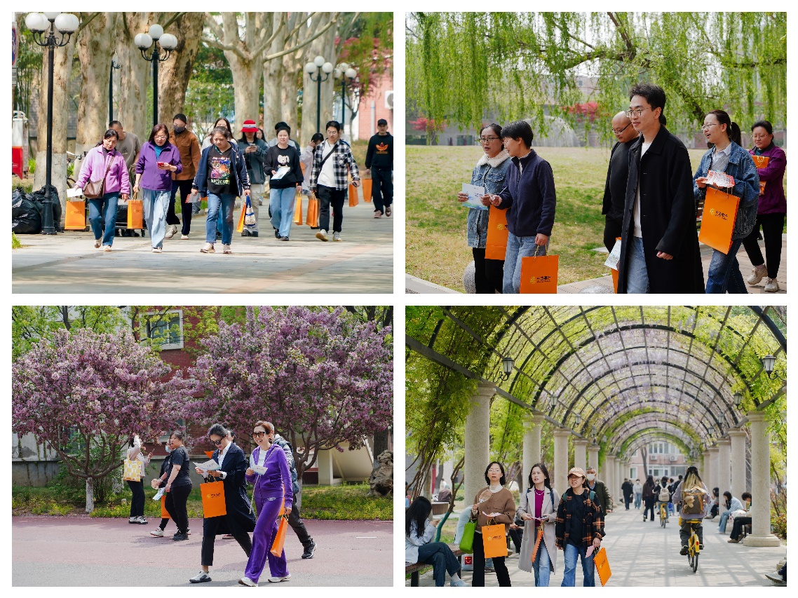 春天里的校园,草木葱茏,百花竞放。广大教职工齐聚中传文化广场,精神饱满、热情高涨。随着发令枪响,老师们踏着轻快的步伐从起点出发,沿红枫大道、海棠大道、樱花大道、梧桐大道一路前行,一步一景,欣赏着沿途盛放的樱花、牡丹、海棠、郁金香,矫健身姿、盈盈笑意与半是花海、半是书香的校园相映成趣,置身其中不由得令人心旷神怡。