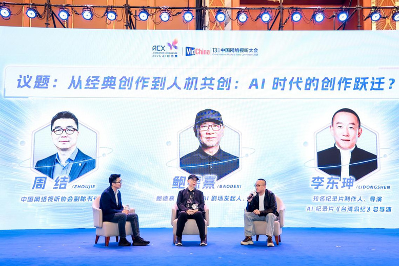 首场对话由中国网络视听协会副秘书长周结主持。聚焦“从经典创作到人机共创:AI时代的创作跃迁?”议题,爱奇艺AI剧场发起人、监制鲍德熹指出,AIGC解放的不是预算,而是创作者的意念与品味;当人人皆可拍摄自己的故事,稀缺性不在技术,而在创作者能否以独一无二的风格成为“不被淹没的百分之一”。知名纪录片制作人、导演,AI纪录片《台湾岛纪》总导演李东珅则将AI的出现视为人类历史上的又一次伟大革命,指出AIGC改变的不仅是生产效率,更是创作者与观众、创作者与创作者之间深层的关系逻辑。周结表示,当前仍处于AI创作经济的早期阶段,工具在更迭,但对美的判断力与对故事的掌控力始终是创作的核心。