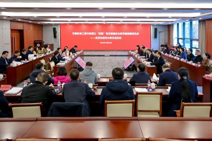 (通讯员 贺敬杰 摄影 李思琪 杨中天) 10月23日,北京市委教育工委副书记、市教育两委机关党委书记张宇蕾,机关党委专职副书记邹美凤,教育两委机关各处室处长、党支部书记和处级直属单位党组织书记一行39人赴中国传媒大学开展“以‘四强’党支部建设为抓手建强模范机关——走进先进校分享交流”活动。中国传媒大学党委书记廖祥忠,党委副书记张绍华,党委常委、副校长杨懿,党委常委、组织部部长徐红梅,党群职能部门负责人及二级党组织书记代表参加活动。