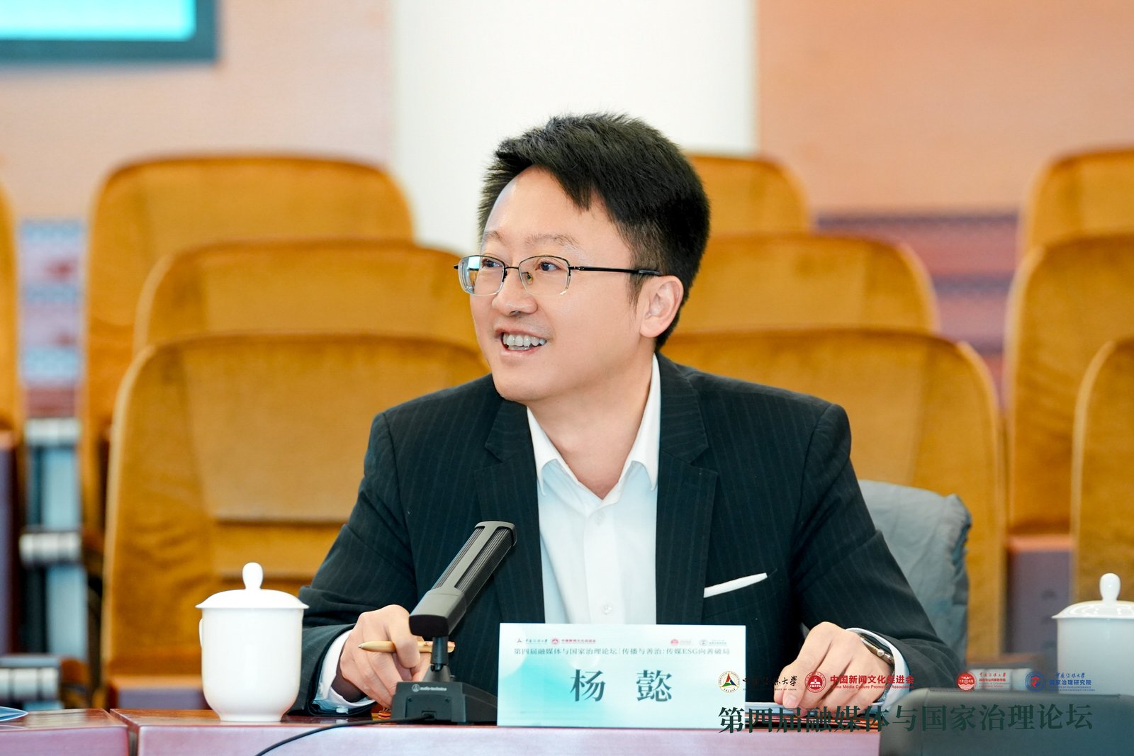 中国传媒大学副校长杨懿在致辞中提出,在ESG框架下讨论传媒发展是一个极具现实感与前瞻性的议题,关乎智能文明时代传媒如何重新定位自身的社会使命、价值方向与治理逻辑,传媒行业如何在全球可持续发展体系中应该承担什么样的责任。他从传媒角色的再定义、发展理念的再塑造、社会治理与价值共建三方面呼吁各界以更开阔的格局,思考传媒在中国式现代化进程中的独特使命。