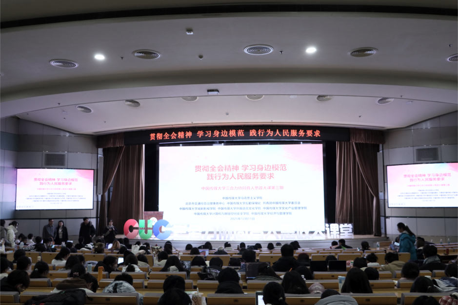 (通讯员 张诗悦 孙靖 须大为 摄影 贺可心 段栖桐)为深入贯彻党的二十届四中全会精神,推动思政小课堂与社会大课堂深度融合,12月11日,中国传媒大学马克思主义学院举办“贯彻全会精神 学习身边模范 践行为人民服务要求”三合力协同育人思政大课,260名学生齐聚一堂,在理论与实践的碰撞中感悟初心使命。