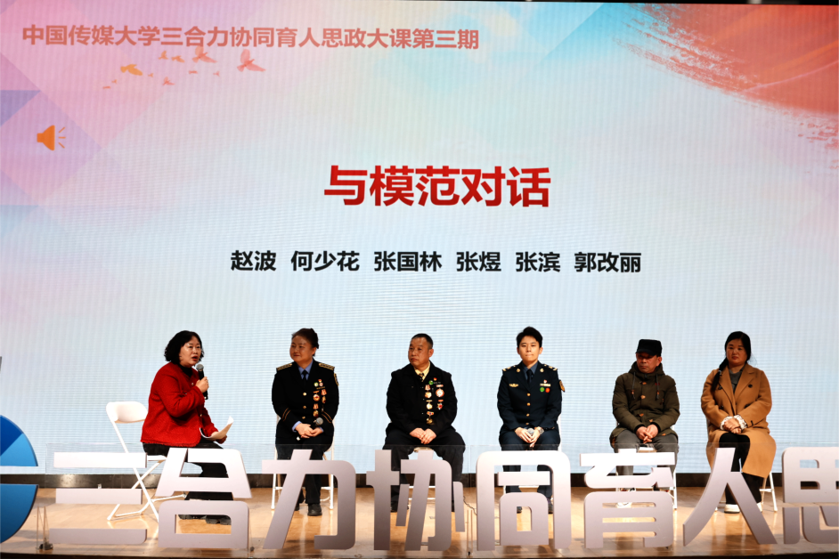 此次课程是中传“三合力”协同育人系列思政大课第三期。该机制通过思政课程、课程思政、学工系统三支教师队伍联动,联动后勤保障处、校团委及多学院力量,以分类教学模式推进思政课教学效果提升,构建全校共建共享的“大思政”育人格局。