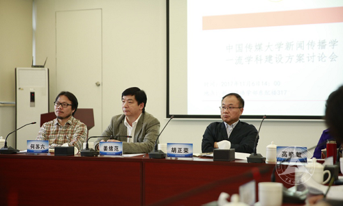 (通讯员 颜冰璇 房宽)11月6日,我校新闻传播学一流学科建设方案讨论会在新闻传播学部召开。校长胡正荣出席并解读《新闻传播学一流学科建设方案》,副校长姜绪范,新闻传播学部学部长高晓虹出席会议,会议由新闻传播学部副学部长何苏六主持。